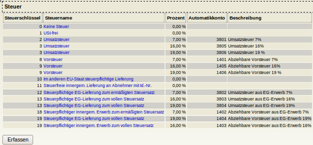 Als Letztes sollte die Steuerliste unter → → kontrolliert werden. Zum Vergleich der Screenshot.