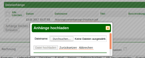 Bei den Dateianhängen wird immer nur die aktuelle Version einer Datei angezeigt. Wird eine Datei mit gleichem Namen hochgeladen, so wird eine neue Version der Datei erstellt. Vorher wird der Anwender durch einen Dialog gefragt, ob er eine neue Version anlegen will oder ob er die Datei umbenennen will, falls es eine neue Datei sein soll.